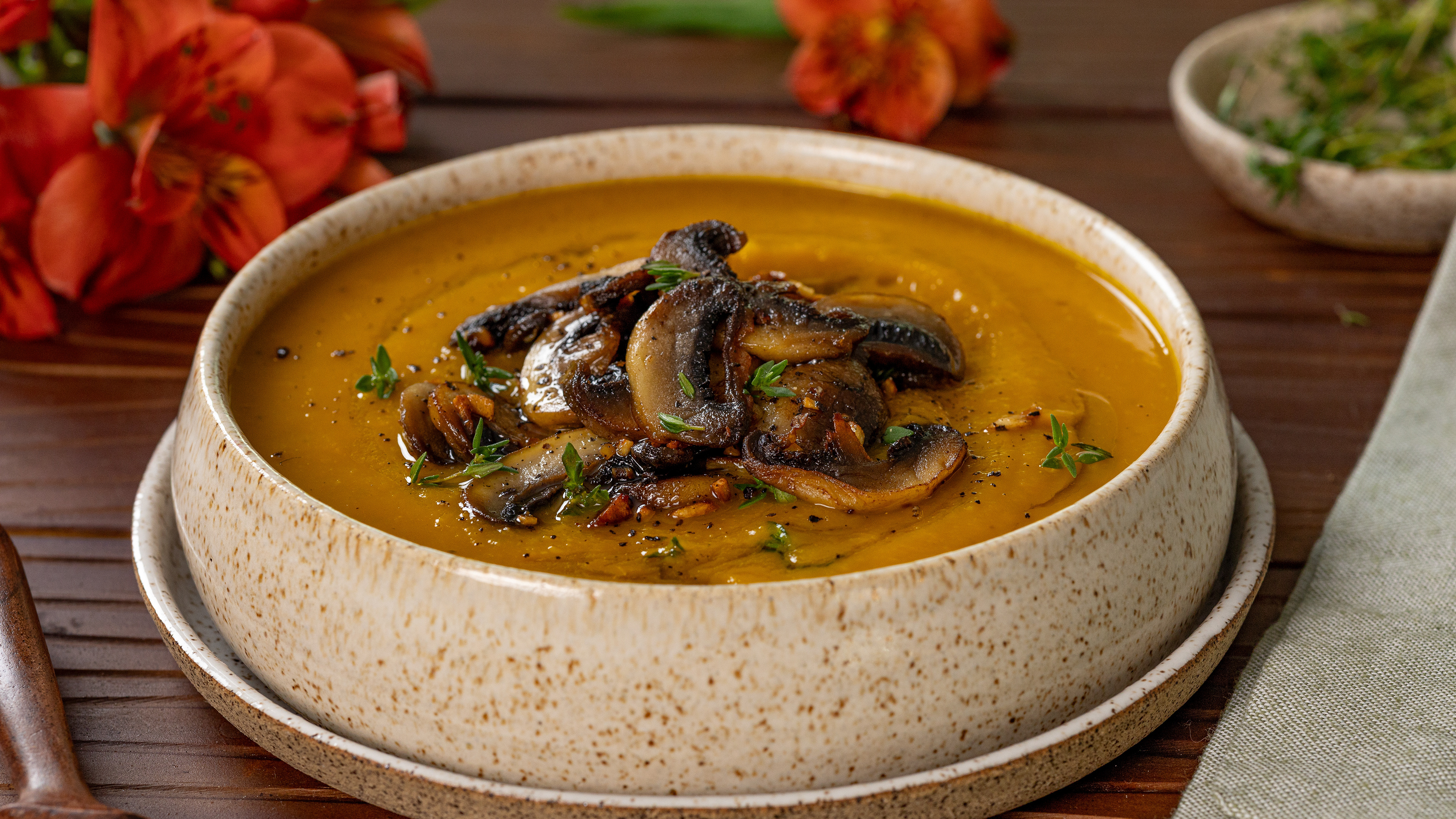 CREME DE ABÓBORA COM COGUMELOS